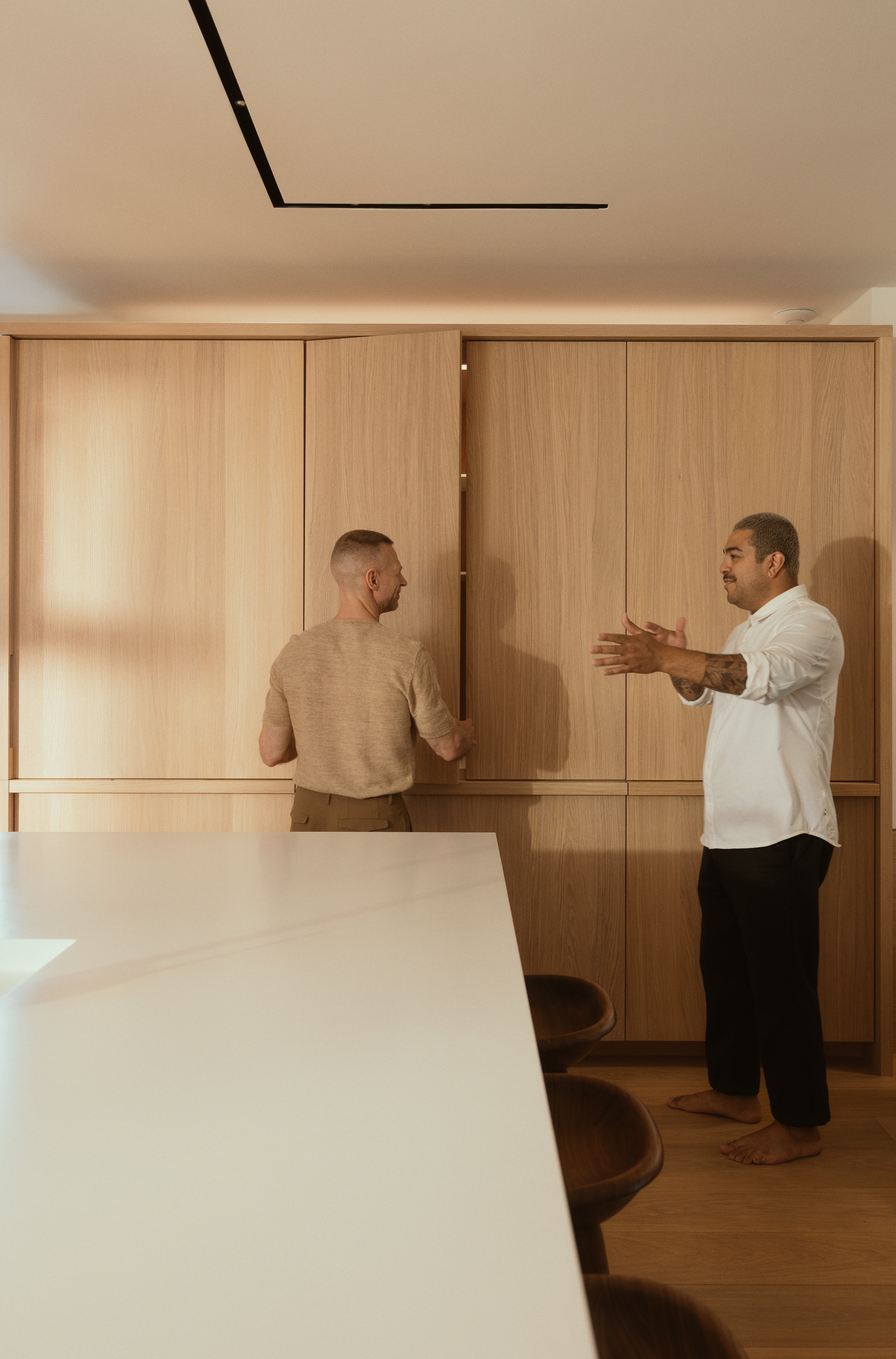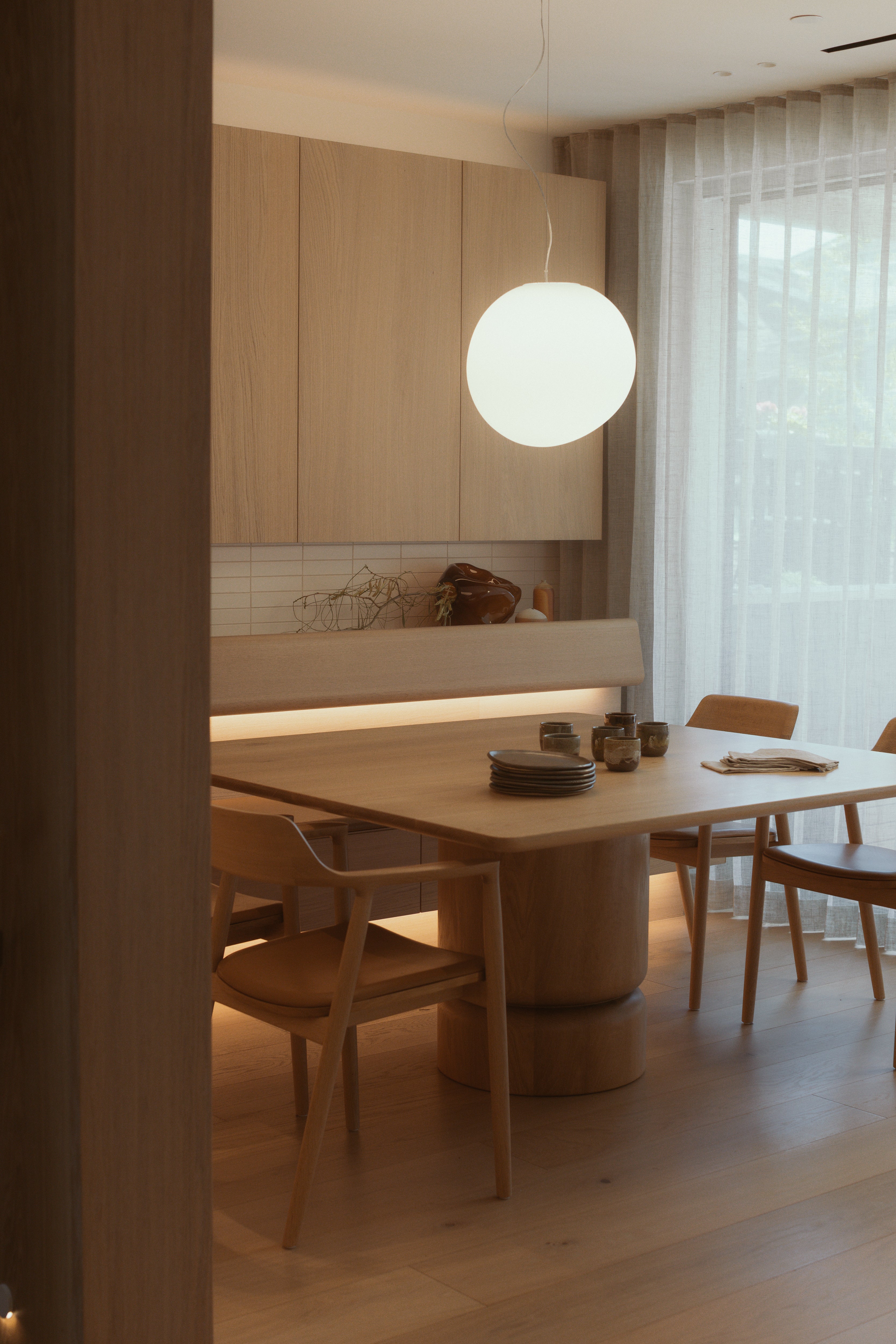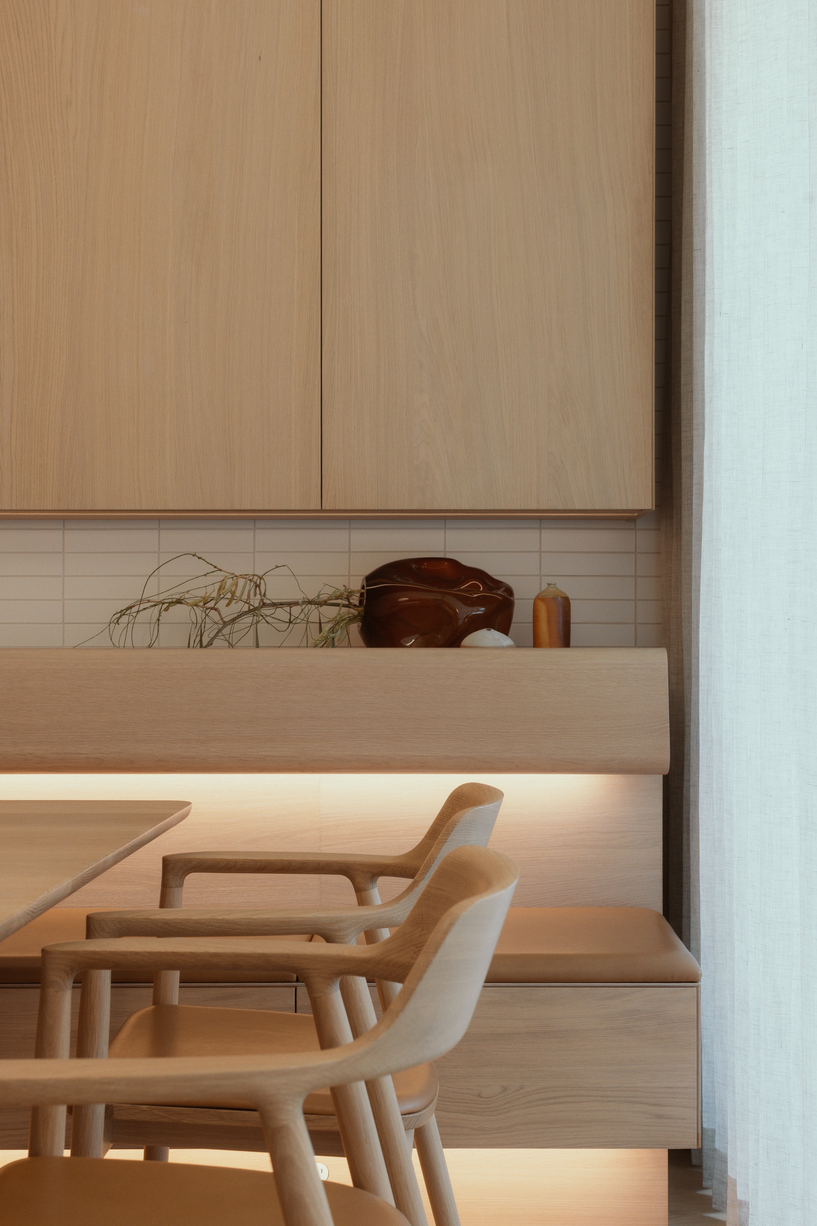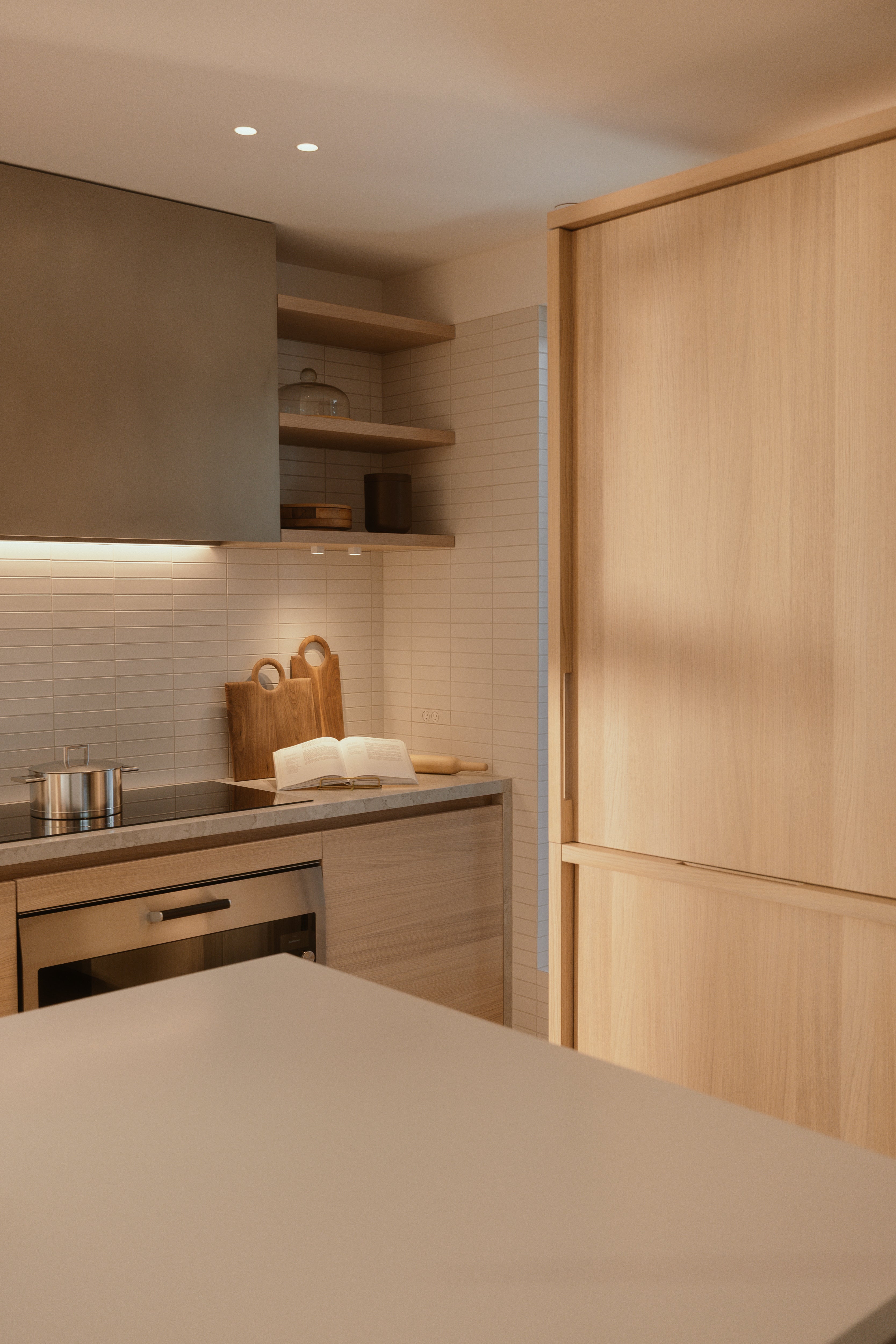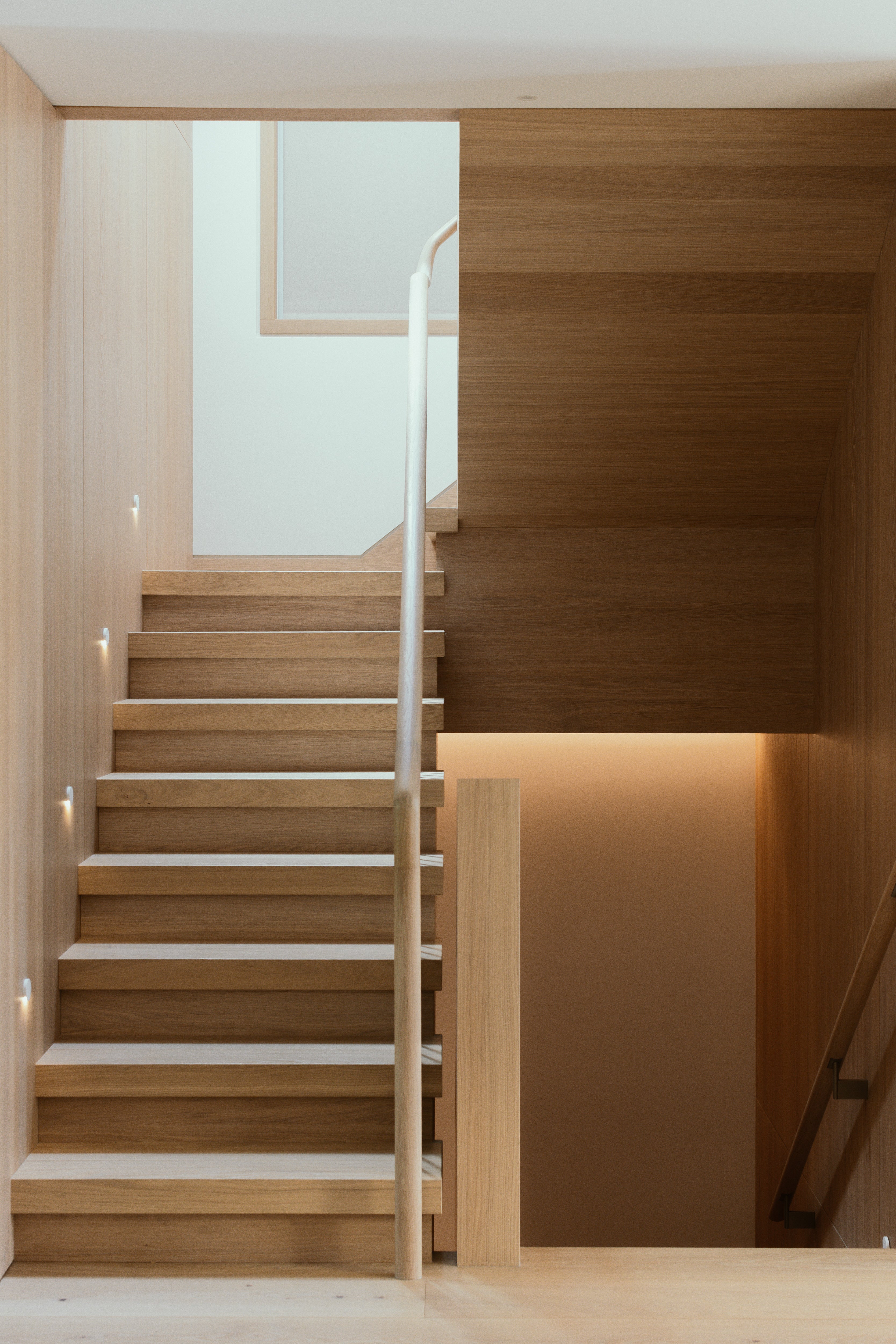 Luxury emerges in thoughtful, unexpected touches: an oval handrail that surprises the hand, a counter tray that protects wood from spills, a bedside platform that seems to float. Observing how people live allows these details to enrich daily life, making the home both refined and approachable.