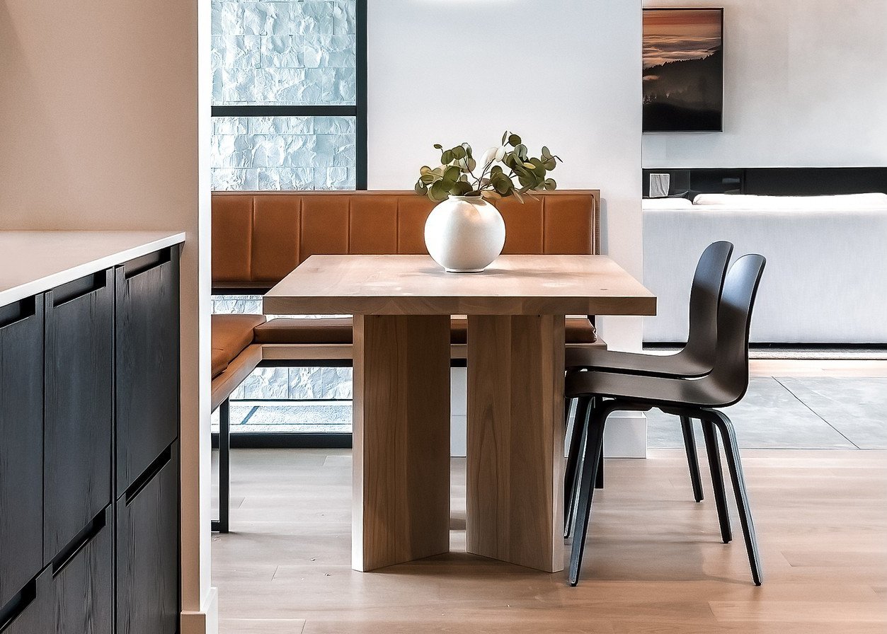 Small details make a world of difference. A simple idea turned in on itself—the angled console legs make a subtle statement that adds refinement to any residence or boardroom. Designed to maximize seating, the Hawkins Table pairs with your chairs of choice.