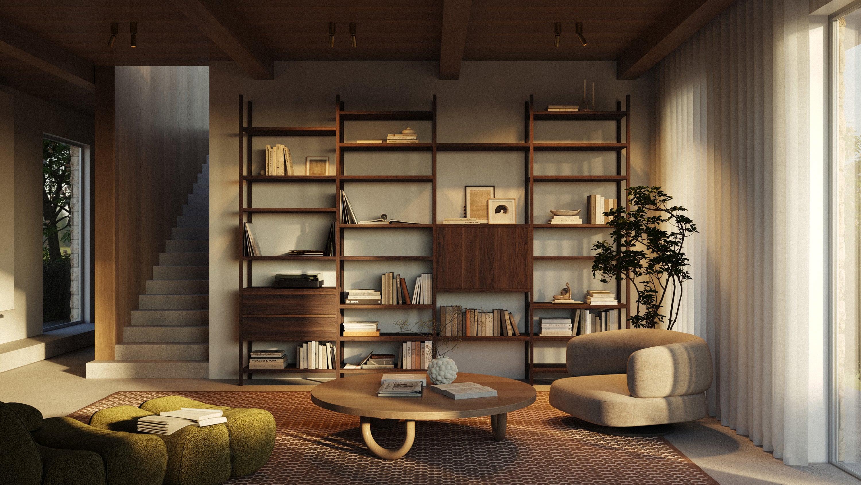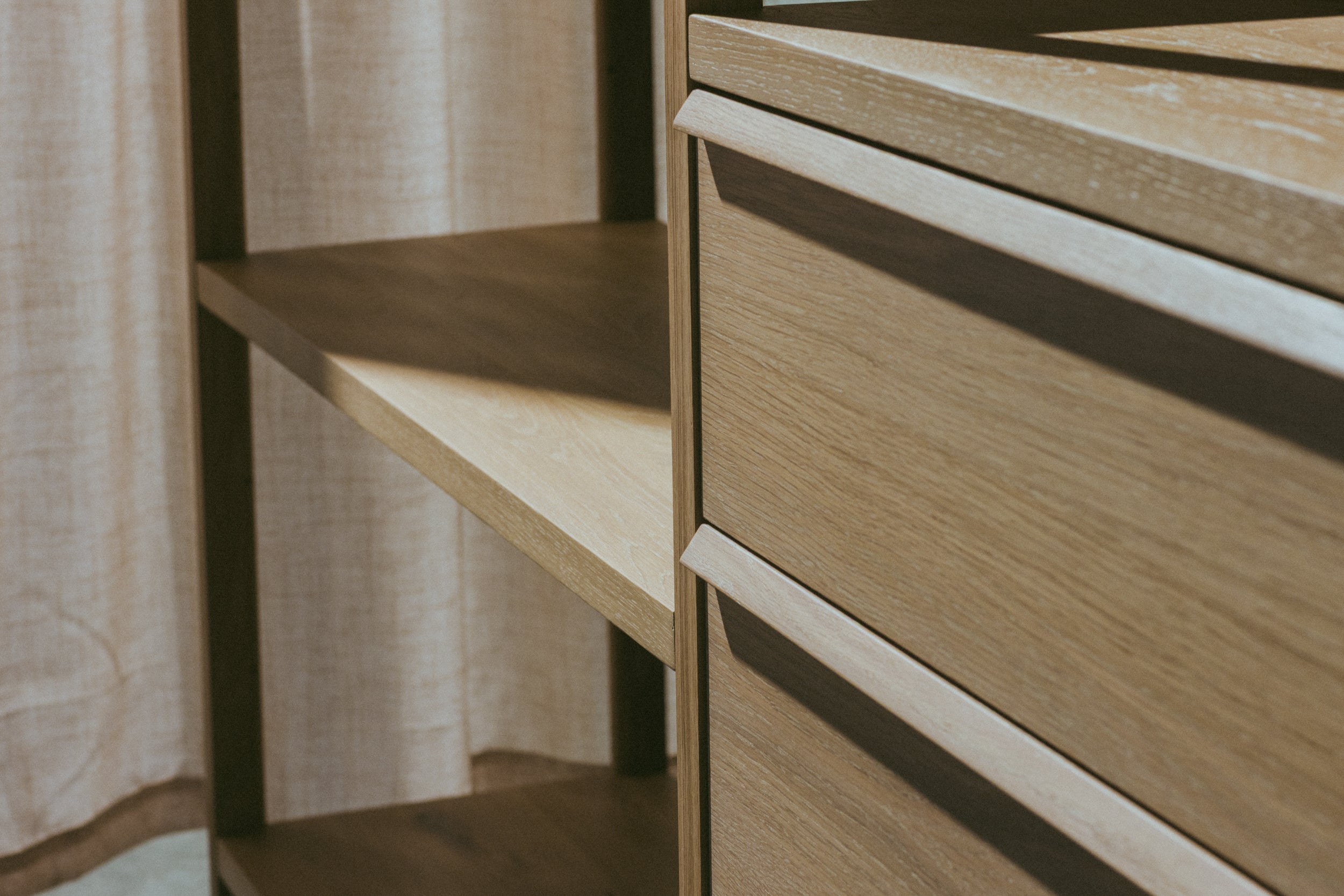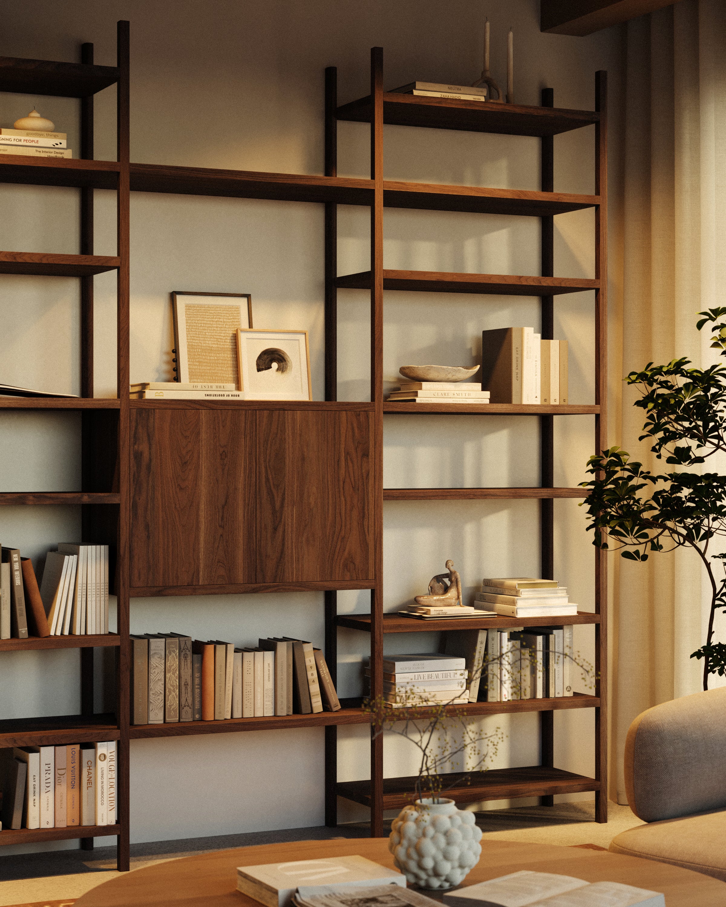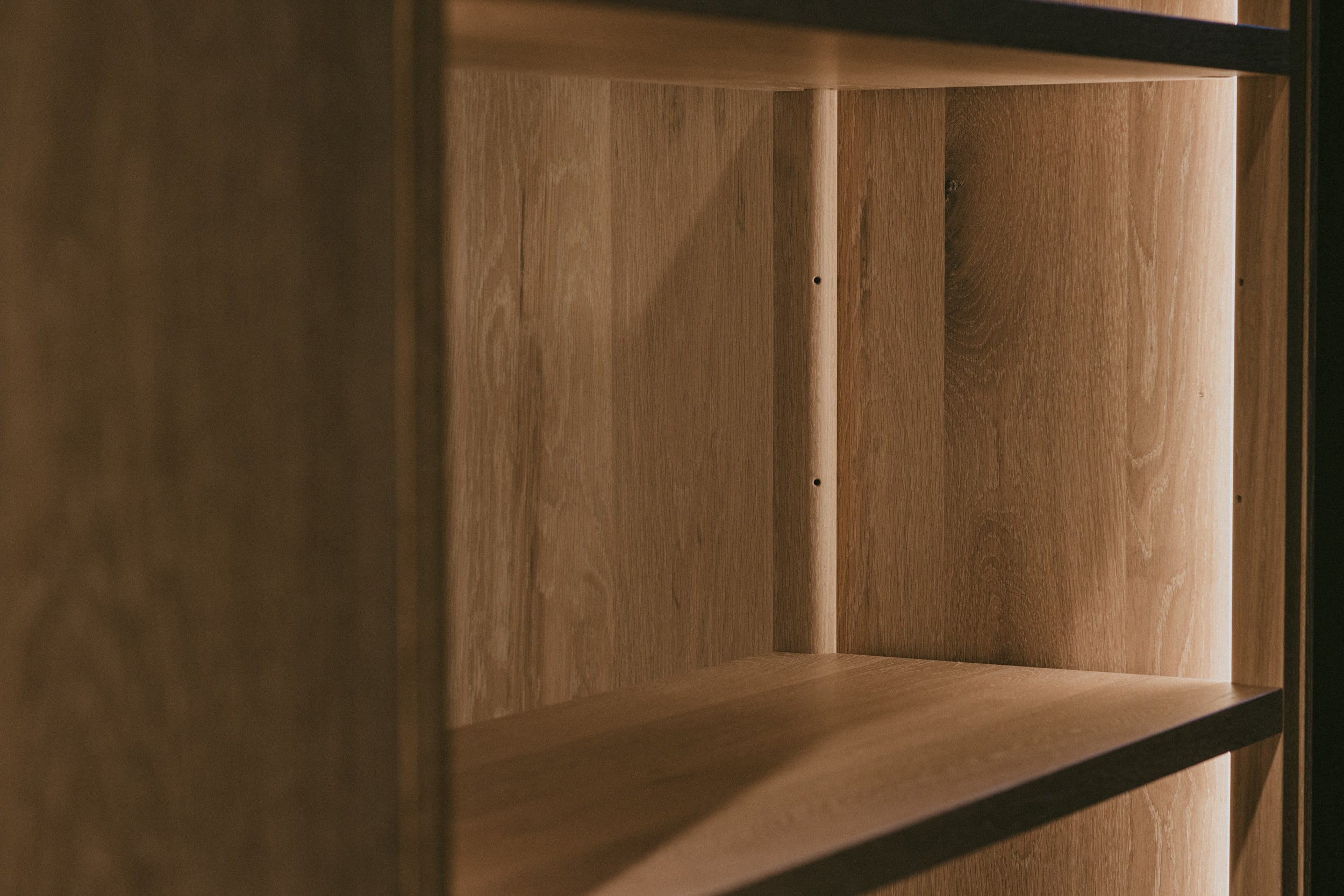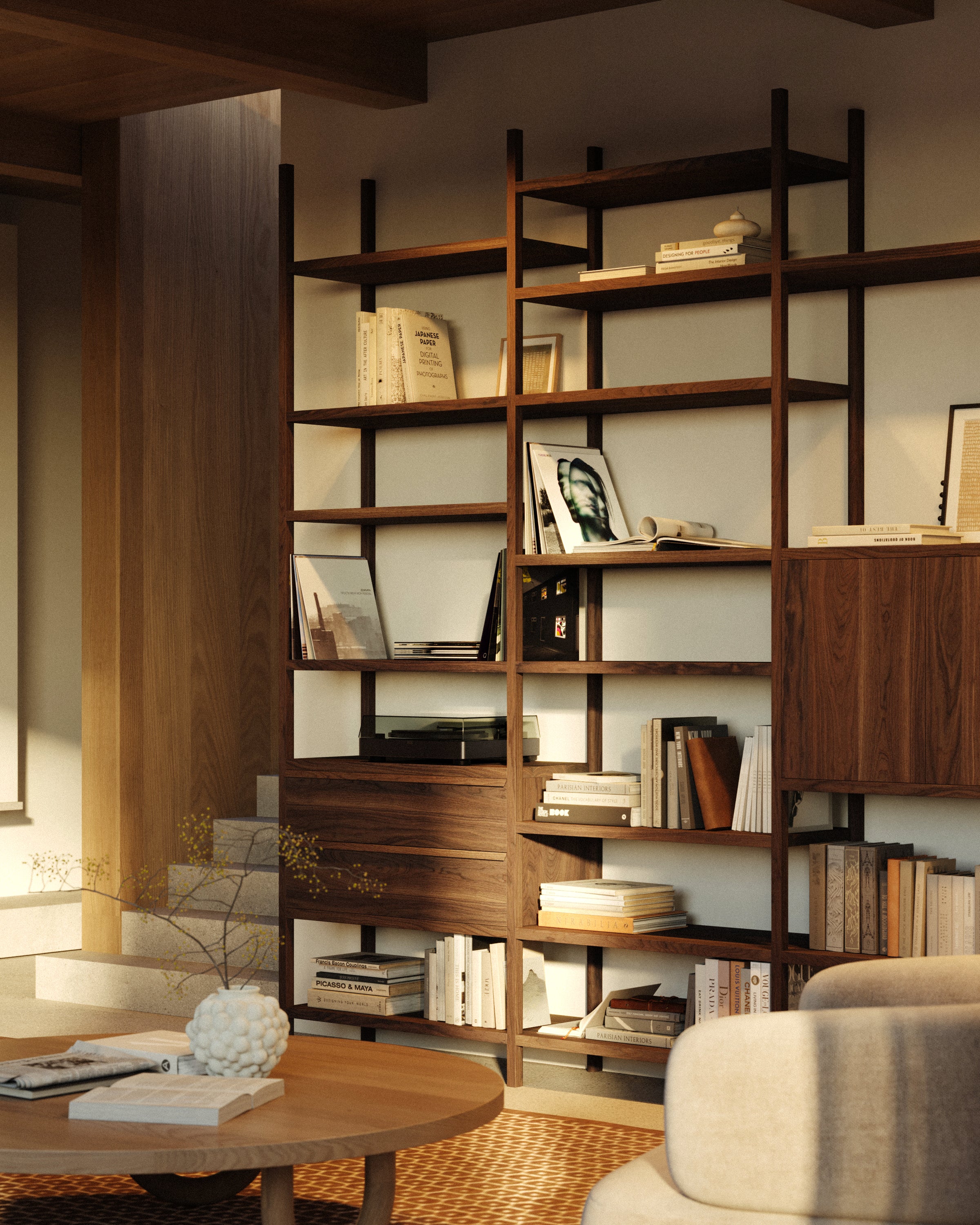 The Pavilion Shelving System is unique in that it is built entirely from solid wood. Natural materials bring warmth, softness, and a tactile presence that endures over time.