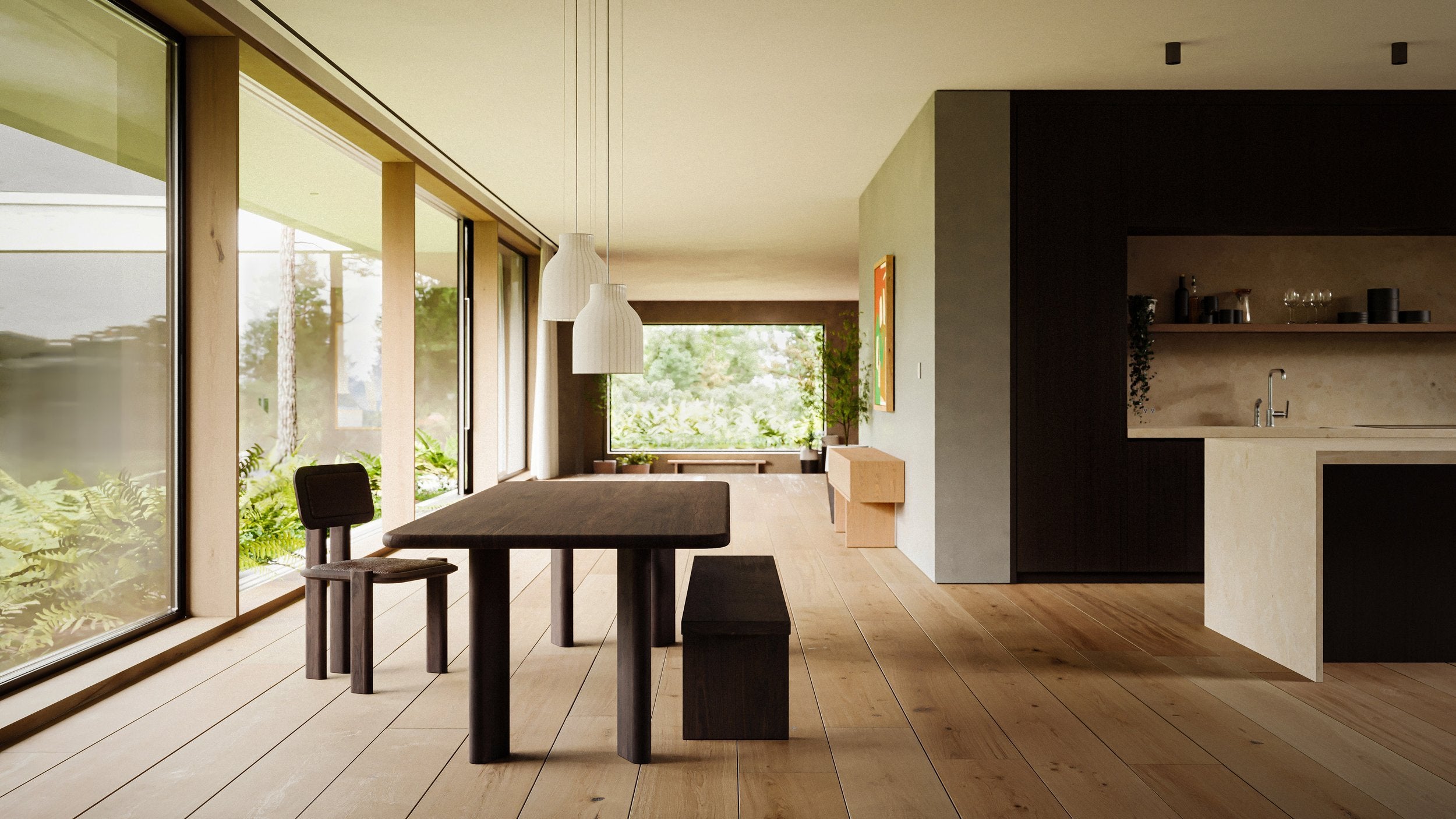 The Rees table expands our twist lock repertoire with matured design and practicality in mind. Its slanted legs at strategic angles emphasize comfort with maximal legroom. The full bullnose edge celebrates materiality and the shapes only solid wood allows—a present perfect table, the Rees ribbons past and present into the future.