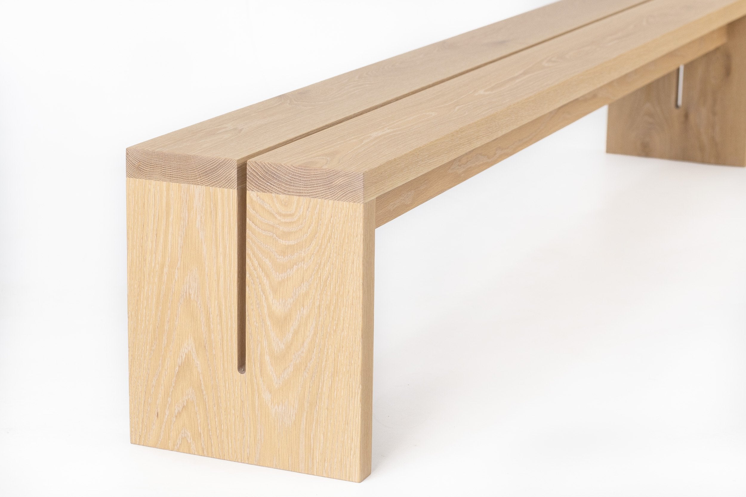Materiality takes center stage as the Split Bench showcases the unparalleled richness of solid wood and ensures not just a piece of furniture, but a timeless companion designed to withstand the test of time. It's a tactile experience that resonates with the raw beauty of natural materials. Meticulously designed and crafted, the Split Bench exudes stability while maintaining an ethereal lightness.